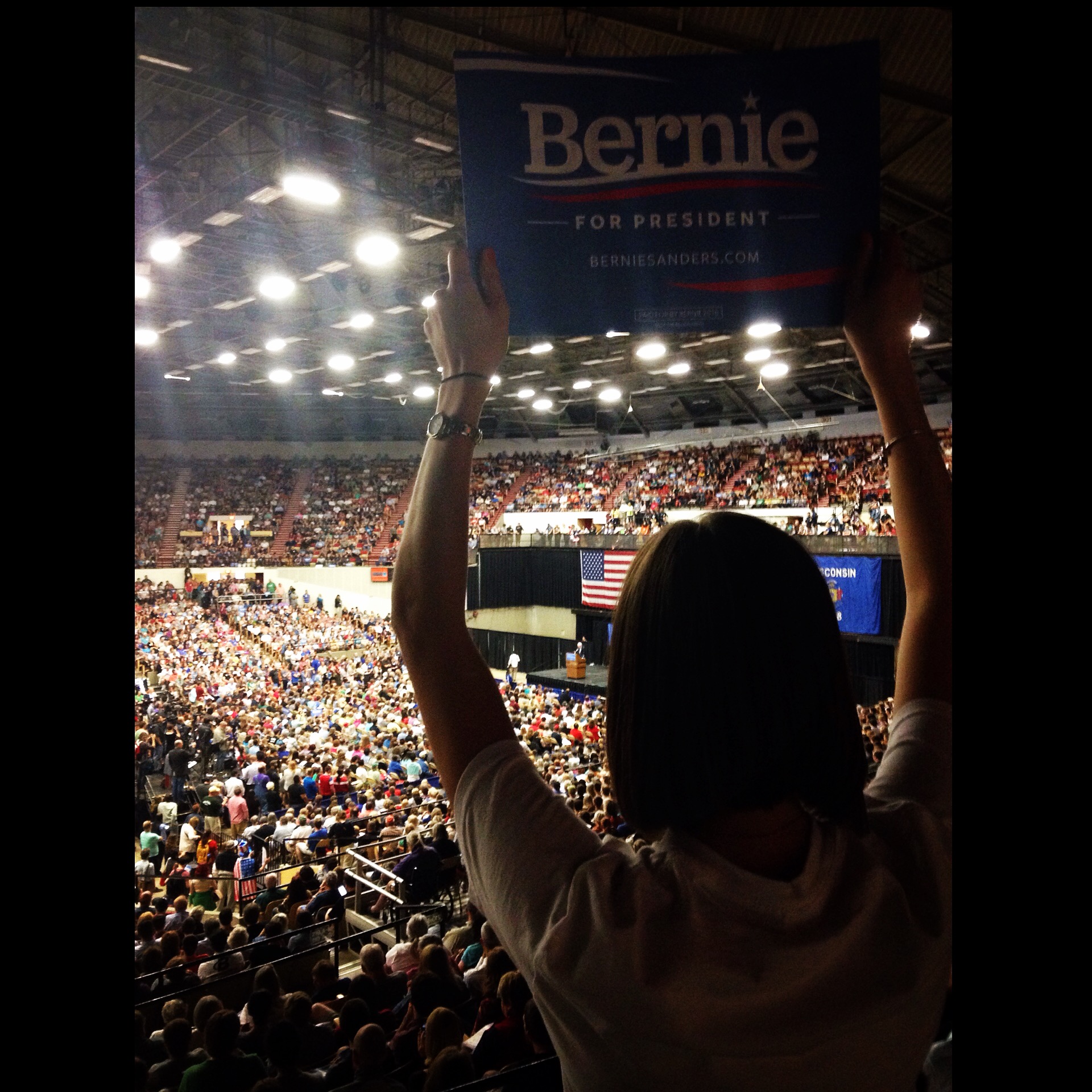 On Wednesday, I went to Bernie Sanders’ largest campaign event to date in Madison, WI. Almost 10,000 supporters (and an additional 9,000 in live-streamers) gathered to hear him speak of his vision for America. This vision is one that I see as if through my own eyes– a country that yes, has a lot to improve on, but a country most of all with hope for the future. Through Bernie’s campaign, I have seen apathy turn to passion and hate turn into conversations, as we shake off the distractions of grande frappuccinos, one-day only sales, and Netflix to talk with one another and pay attention. It is a long road, and one we still have many steps on before we get to where we’re going. But the important thing is so many of us are beginning to walk it.