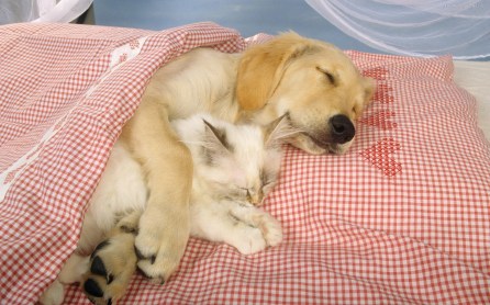 Partisan politics will have you believe that Democrats and Republicans are like cats and dogs (and furthermore, that they are the only two options)– that they can’t agree on anything, and if people don’t share your political views, they’re heathenish scum. Well, I’m so far left if you poke me I’d probably tip over, and Boyfriend is a little right of moderate… and neither of us is heathenish scum. It just happens that we have differing ideas on how to serve our country’s best interest, and that’s actually okay— plus it can make for interesting conversation and respectful debate! For further proof that two different things can get along, please refer to the following picture of an adorable kitten and puppy: