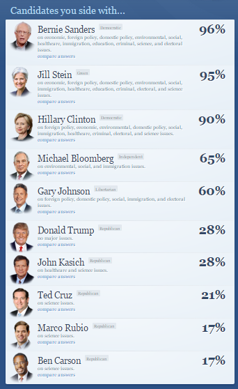 My results (see, even I, self-proclaimed extreme leftist, can agree with Marco Rubio and John Kasich on some things!)